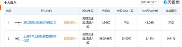 天眼查资料显示,围海股份目前第一和第二大股东分别为围海控股和上海千年工程投资管理有限公司。2017年8月围海股份进行了一次大的资产重组。彼时,围海股份作价14亿元向千年投资、仲成荣等31名交易方收购千年设计88.23%股权,2018年6月收购正式完成,仲成荣与妻子王永春以及千年投资持有围海股份6.51%股权,成为公司第二大股东。冯全宏本人则间接持有围海股份17.76%股权。