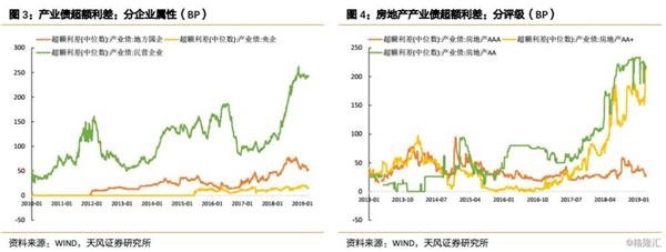 从地产企业超额利差中位数情况来看,AA和AA+等级的地产债估值更高。