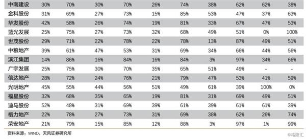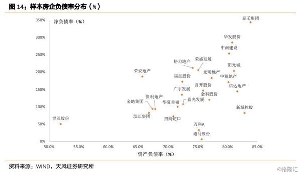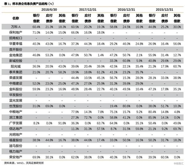 24家样本房企,通过对其资产负债率,有息负债融资产品结构和期限结构进行分析,整体而言,泰禾和阳光城融资成本高,融资产品结构依赖于信托等非标融资,再融资压力较大,而万科和保利地产融资成本低,融资产品结构和期限结构相对合理,再融资压力小。