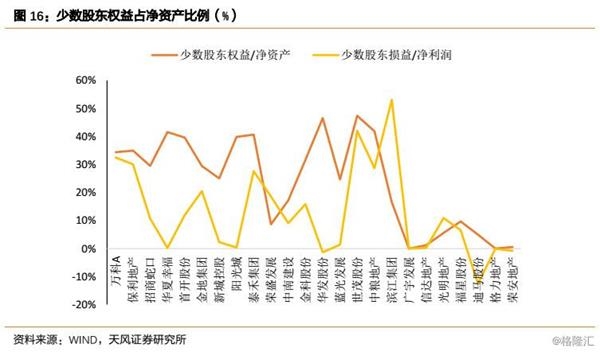 部分房企少数股东权益占净资产比例持续大于少数股东损益占净利润比例,可能和房企采用明股实债的融资方式有关。