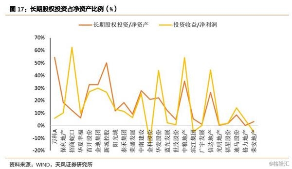 房企没有并表的合作开发项目的利润体现在投资收益中,而房企持有的非并表项目公司的股东权益则反映在长期股权投资中。部分房企表外合作开发项目多,导致长期股权投资占净资产的比例和投资收益占净利润的比例较高。