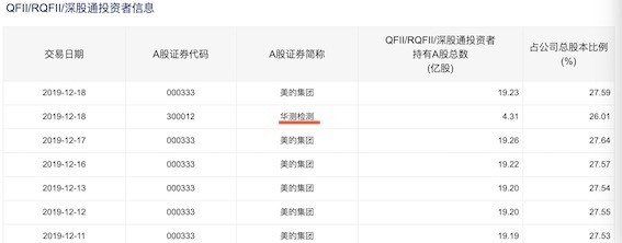 先是今年3月7日大族激光(002008.SZ)因被外资“买爆”而被剔除出MSCI中国全股指数,再到12月初时美的集团(000333.SZ)也濒临被外资“买满”,直逼28%的警戒线。当时根据深交所披露的数据,截至12月11日,美的集团外资持股数达19.19亿股,占总股本的27.53%。如今,今年的大热门股华测检测成了下一个濒临被“买爆”的标的,截至12月18日,外资持股比例为26.01%。