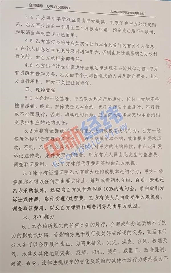 值得注意的是,合约规定,消费者在每次出行前需要向旅行社缴纳年度管理费980元,首次免费。此外,旅行社有权综合当年所在地区的通货膨胀率对管理费做适当调整。