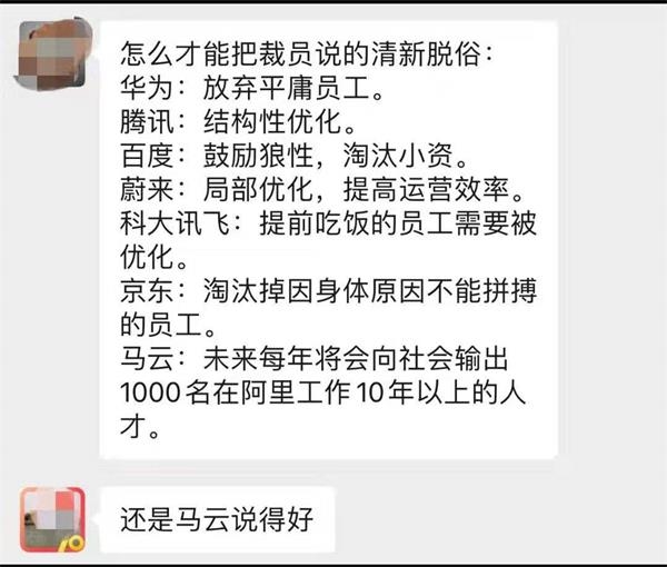 很多网友都感叹:马老师真是语言天才,第一次听到有人可以把裁员说的那么冠冕堂皇。