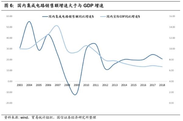 国内的市场空间是信息技术增长的潜力,已经到来的人工智能、5G、物联网终端将会继续带动国内半导体销售增速超过GDP增速。特别是贸易问题之后,国家层面对半导体的重视程度提高,国内的半导体产业会享受一些政策红利,单个产业的发展速度超过全国GDP增速是理所当然的。
