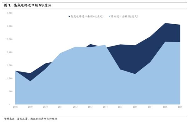 一、半导体是国民经济之重。2019年中国集成电路进口额3055亿美元,原油进口额2387亿美元。过去10年集成电路进口额扩大2.4倍,原油进口额扩大1.8倍。