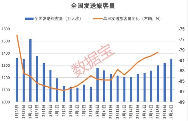 从客运情况来看,疫情影响下,节后返程高峰迟迟未开启。根据交通运输部的数据,节后全国铁路、道路、水路、民航旅客运输量累计同比降幅超80%,返程总人数较往年大打折扣。
