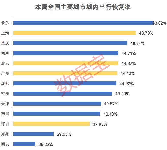 重点城市城内出行恢复率仍不足50%
