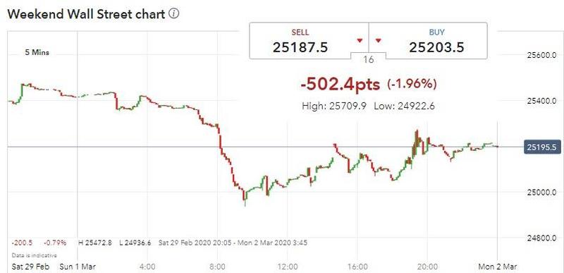 周一美股期货尚未开盘,但利差押注市场就已暗示道指期货开盘下跌500点。