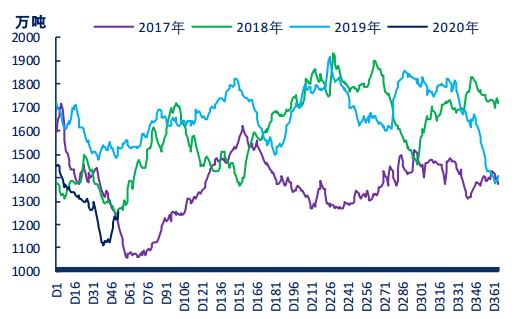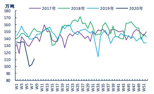 从复工中期来看,疫情逐步进入稳定期到康复期的发展过度阶段,人员返工到岗率大幅提升,上下游实际产能利用率也逐步大幅回升,沿海市场货源能否在采购启动前出现大幅累积,将是影响中期市场走向的主要因素,而库存的累积将依赖于上下游进度不同的达产比例。