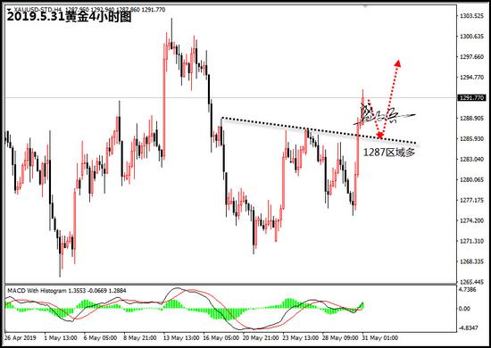 黄金策略:1287区域做多,止损1282,目标1296,1300