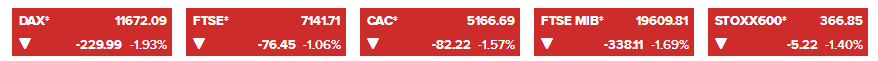 欧洲斯托克600指数早盘跌幅扩大至1.1%,创2月19日以来最低水平。欧股汽车指数跌2.7%,创1月8日以来新低;欧股基本能源指数跌1.9%,创1月24日以来最低水平。