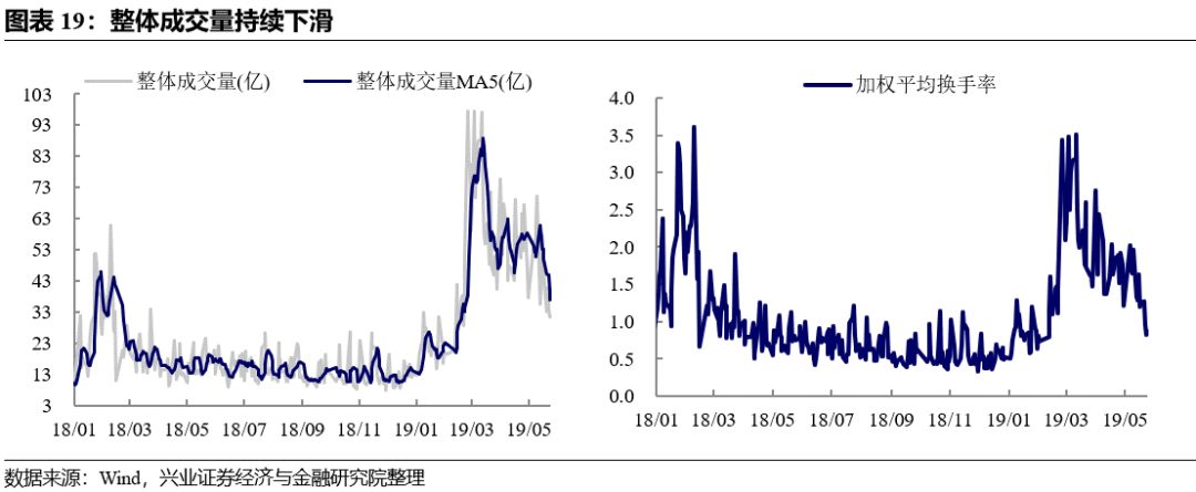 本周A股三大股指延续弱势表现,上证综指下跌1.02%,深证成指下跌2.48%,创业板指下跌2.37%。周一三大指数小幅低开,全天弱势盘整,北向资金持续净流出,板块方面,稀土概念股午后大涨,华为产业链则有所分化,而此前以猪肉和人造肉为首的农业股则大幅下跌;周二主要股指低开高走,单边上行,稀土板块延续强势,掀涨停潮;周三大盘弱势整理,两市成交额略有缩减,国产操作系统概念尾盘上升,华为概念股继续飙升,稀土板块高开低走,多股尾盘涨停,此外,工业大麻、长三角一体化、燃料电池等热点板块均出现明显下挫;周四指数单边下行,创业板指创三个月新低,国产操作系统概念多股涨停,5G概念大幅调整,华为概念股回落明显;周五权益市场缩量窄震,上证综指收盘上涨,深证成指、创业板指连续下跌,两市成交创三个月来新低。