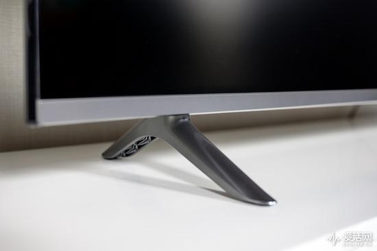 全面屏电视开关机对比为了控制成本,全屏幕电视前后外壳均是使用塑料制成的,支架也没有例外,不过小米在支架上做了金属风格的喷漆处理,让它看起来更具金属质感,背面外壳增加了一条突出加强筋,保证整个外壳强度,背面预留了4个符合VESA标准的螺丝孔,方便用户挂墙使用。