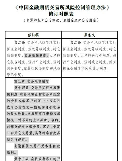此外,中金所还发布了新保证金规定实施后的《中国金融期货交易所风险控制管理办法》修订对照表。