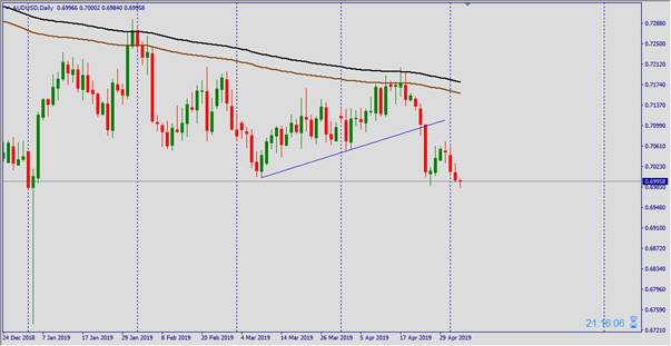 AUDUSD:EightCap易汇观察,周线方面,上周澳元收出一根大型阴线,价格最低破位至0.7。日线级别上,澳元在价格回到大型阴线内部后,昨日重返下跌趋势收出阴线,破位0.7整数关口。