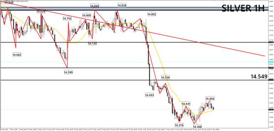 白银技术面上均线拉平且K线于均线上下排列,高低点持续下移,亚盘空方为思考路线。