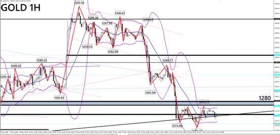 短多可预挂BuyStop于1279.3美金/盎司止损3美金。