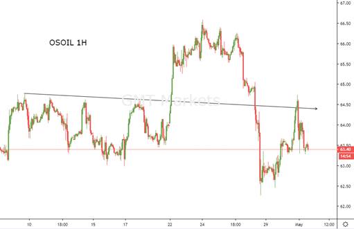 美国原油:昨日美国原油波动较为剧烈,沙特将要延长减产协议的言论令原油获得买盘支撑,而凌晨美国API原油库存数据增幅远超预期,油价转而下行。整体来看,昨日油价恰好在64.5区域承压下行,这符合GMTMarkets分析师Flynn昨日的预期。上周五油价大跌后,油价的上行趋势遭到一定的破坏,近期油价可能面临一定的调整。整体区间暂时关注62.5–64.5。若64.5迟迟不能上破,油价后市或面临较大下行压力。
