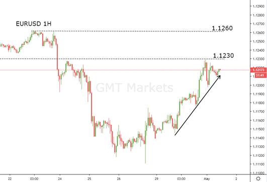 欧元兑美元:昨天有众多欧元区经济数据公布,其中法国一季度GDP数据、德国消费者信心指数、欧元区失业率、欧元区GDP、德国4月CPI数据均好于预期,这些提振欧元反攻,欧元连续两日收中阳,昨日最高触及1.1230附近,短期欧元或展开进一步反弹。
