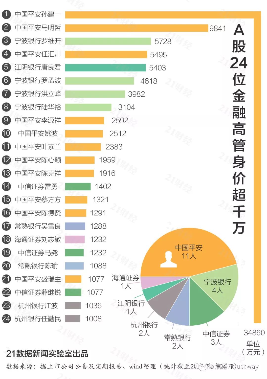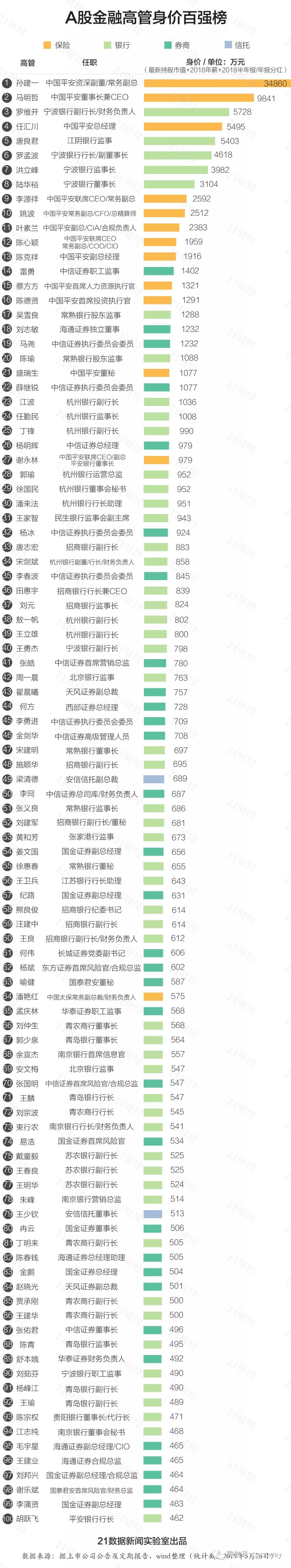 24位金融高管财富超千万,其中: