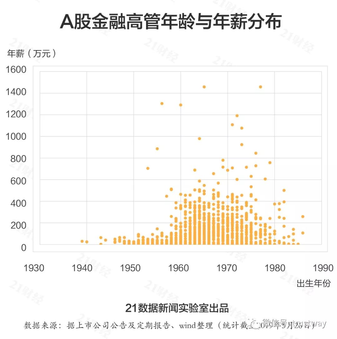 从年龄来看,相对于其他行业,金融高管中挑大梁的仍为50后、60后,合计占比超过2/3,60后更是成为高薪集中营。