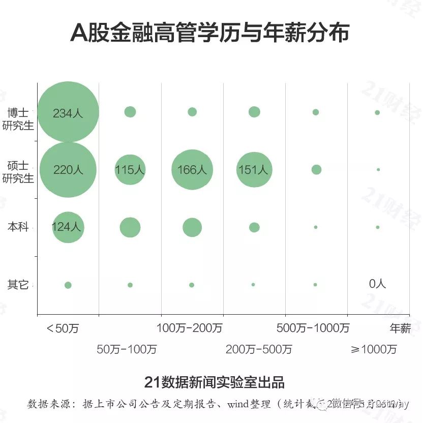 虽然学历不是绝对门槛,但金融业或许是践行“知识就是金钱”最彻底的行业之一。据21数据新闻实验室统计,在1931位金融高管中,本科、硕士、博士分别占比24%、48%、24%,合计占比高达96%。